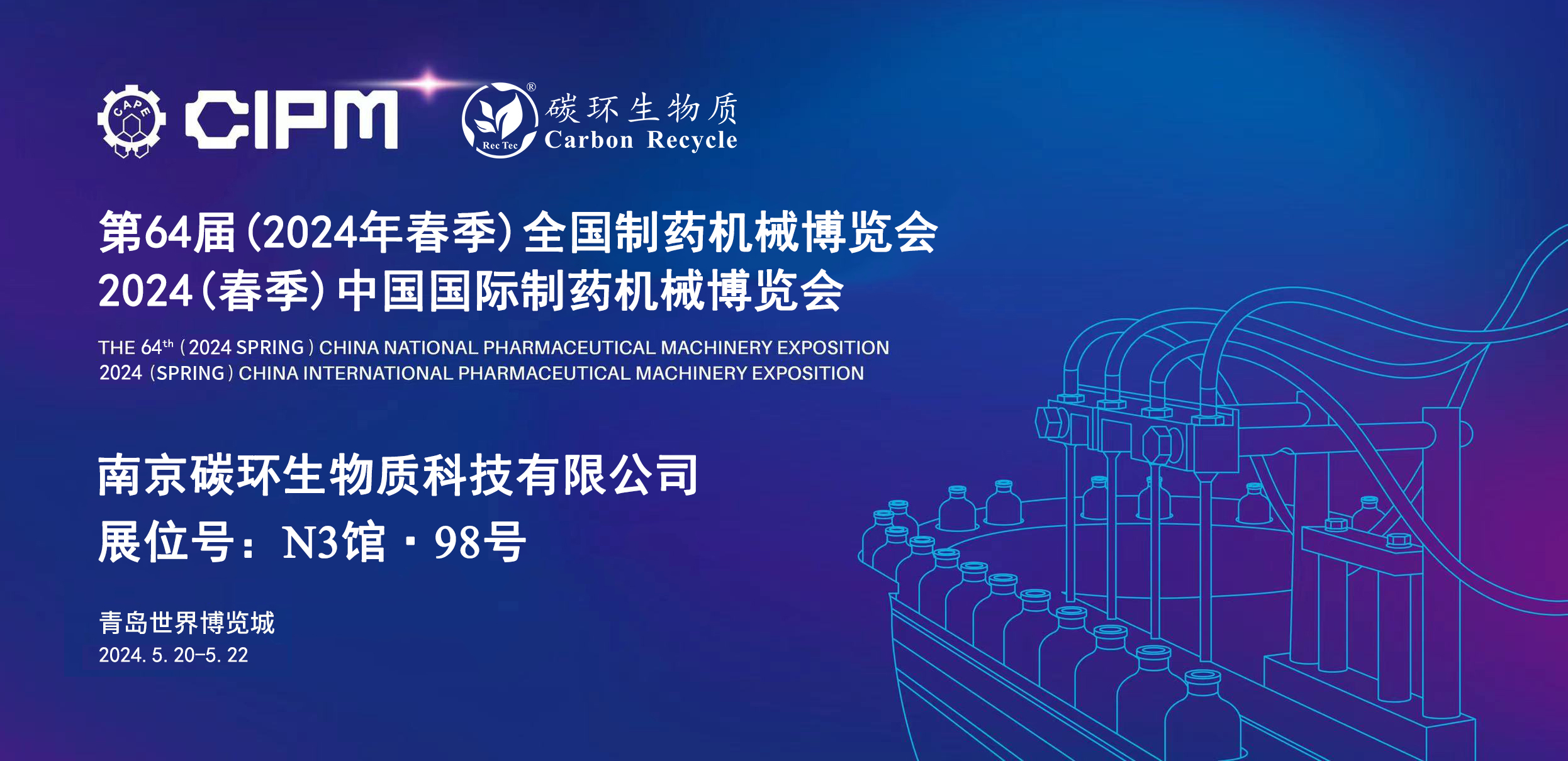 南京碳環(huán)生物質科技有限公司將于2024年5月20日-22日在青島世界博覽城參加第64屆(2024年春季)全國制藥機械博覽會暨2024(春季)中國國際制藥機械博覽會(以下簡稱“藥機博覽會”),誠摯邀請您蒞臨指導。